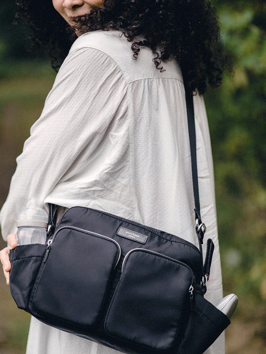 Designed to be used through from the early days of parenthood and beyond, add a contemporary touch to your pram with this convertible stroller organiser/ crossbody bag. With all the space you need to store essentials, this handy style is the number one choice for mums on the move. The built-in stroller attachment allows you to use as a buggy caddy, or simply fling over your shoulder for quick trips out without your stroller.